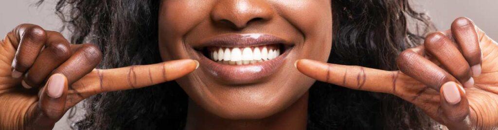 We whiten teeth by applying the whitening gel to our teeth whitening procedure.